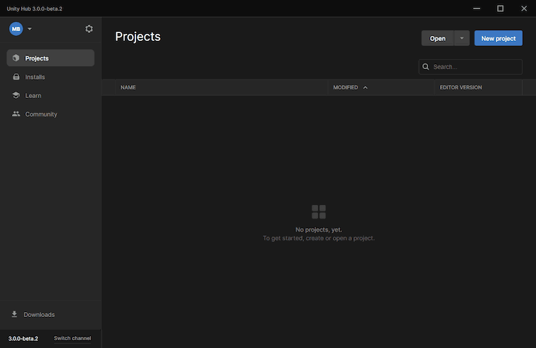 1. In the Unity Hub v3 Beta, click Open > Open remote project to see the list of your Unity version control repositories that contain a Unity project.