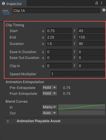 Clip Timing properties for an Animation clip
