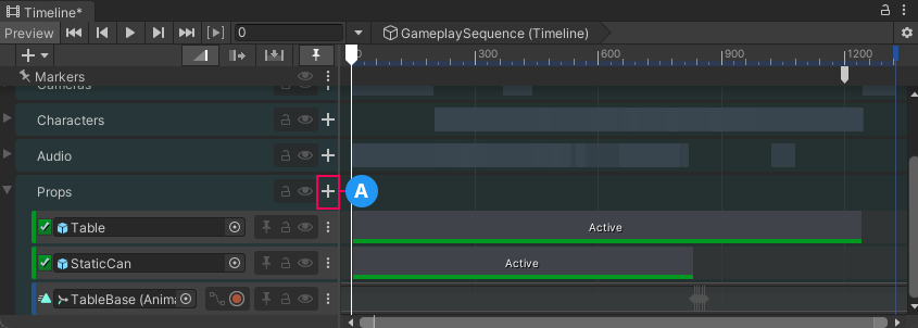 The Add button (A) beside the Prop Track group name.