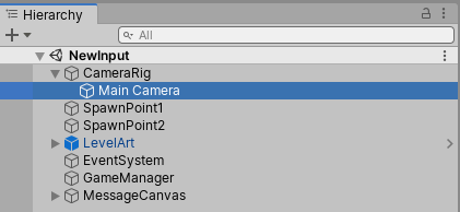 Main Camera - The camera in the Scene is at the root of the hierarchy