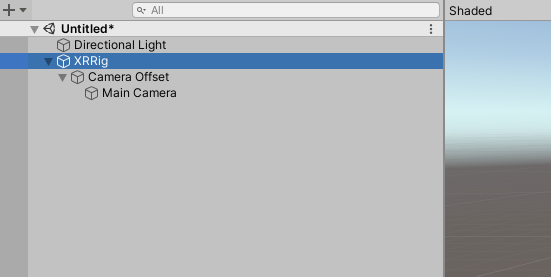 For example, the following image shows a new Scene that can be converted using the Add AR Rig option: