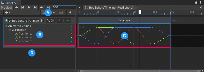 Use the Curves view to view and edit animation curves for audio tracks, infinite clips, and animation clips. The Curves view is similar to Curves mode in the Animation window.