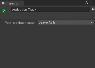 Inspector window when selecting an Activation track in the Timeline window