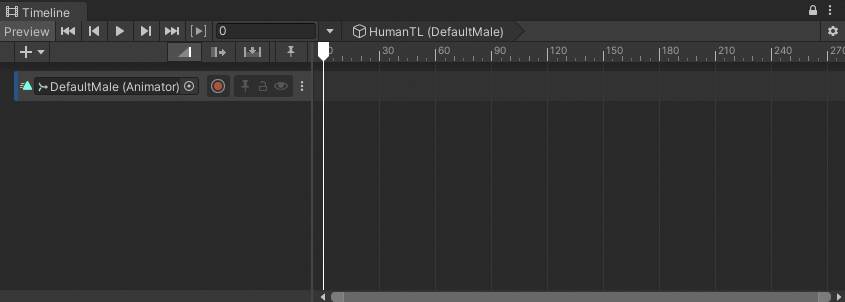 This workflow uses the humanoid model named DefaultMale and animation source assets from the Gameplay Sequence sample for its examples. Consult Timeline Samples for information on the samples available from the Timeline package and how to import these samples into your projects.